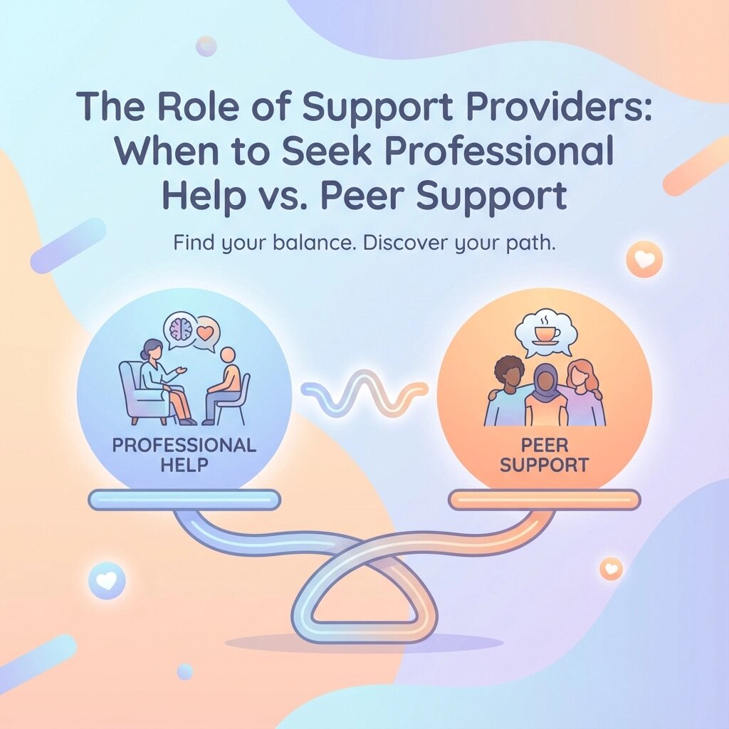The key difference? Professionals offer clinical expertise and objective perspective, while peers offer the irreplaceable value of shared understanding and lived experience.