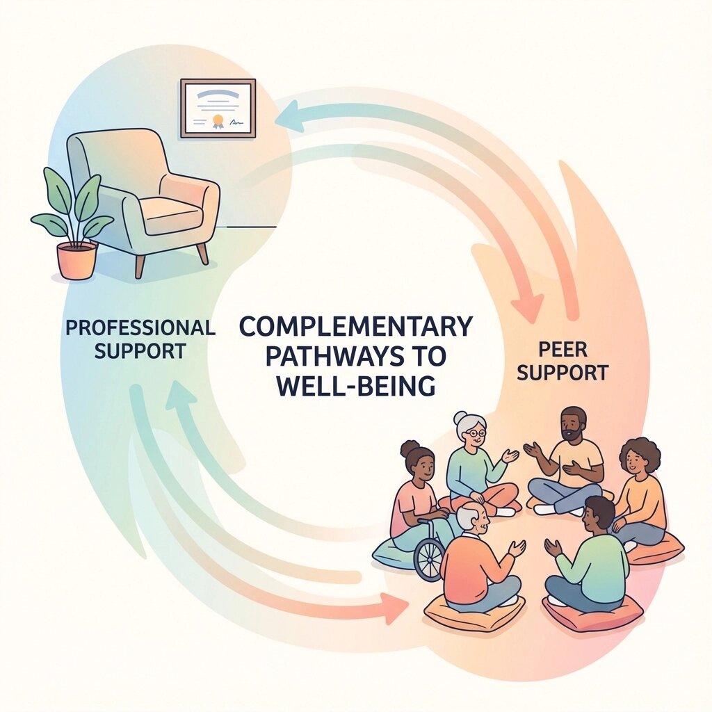 Here’s what many people don’t realize: you don’t have to choose just one. The most effective support often combines both professional help and peer connection. Think of them as different tools in your toolkit, each serving unique purposes.